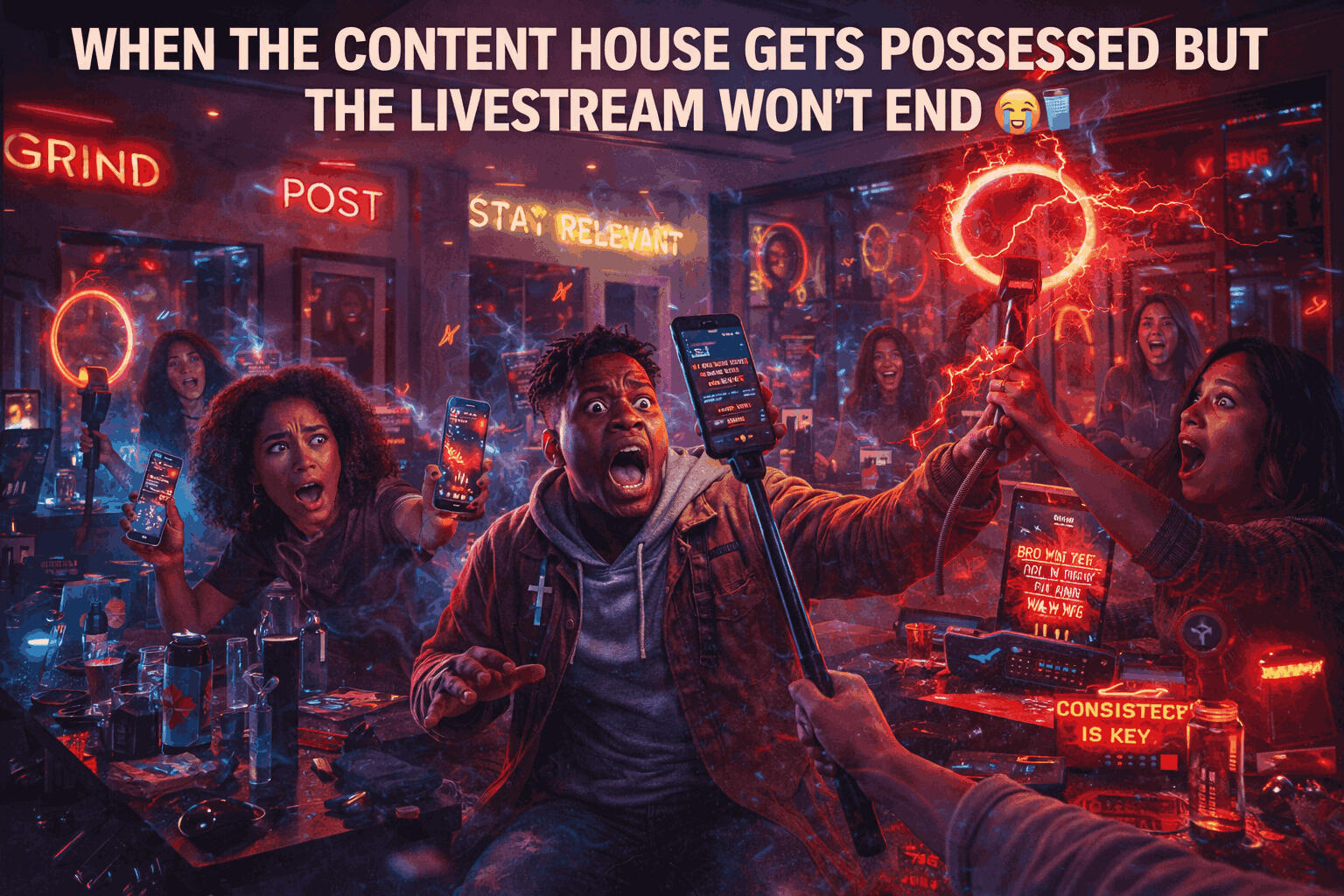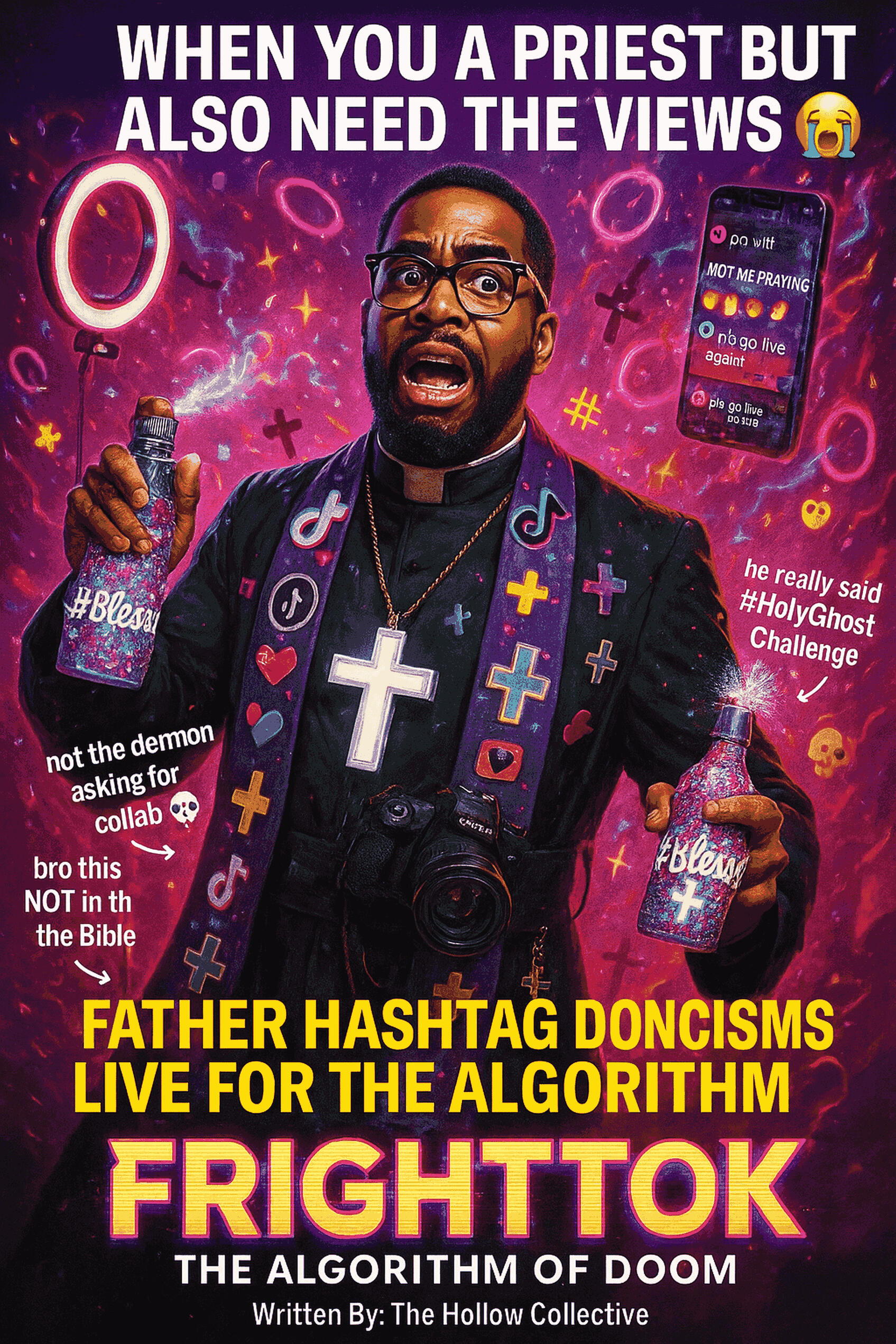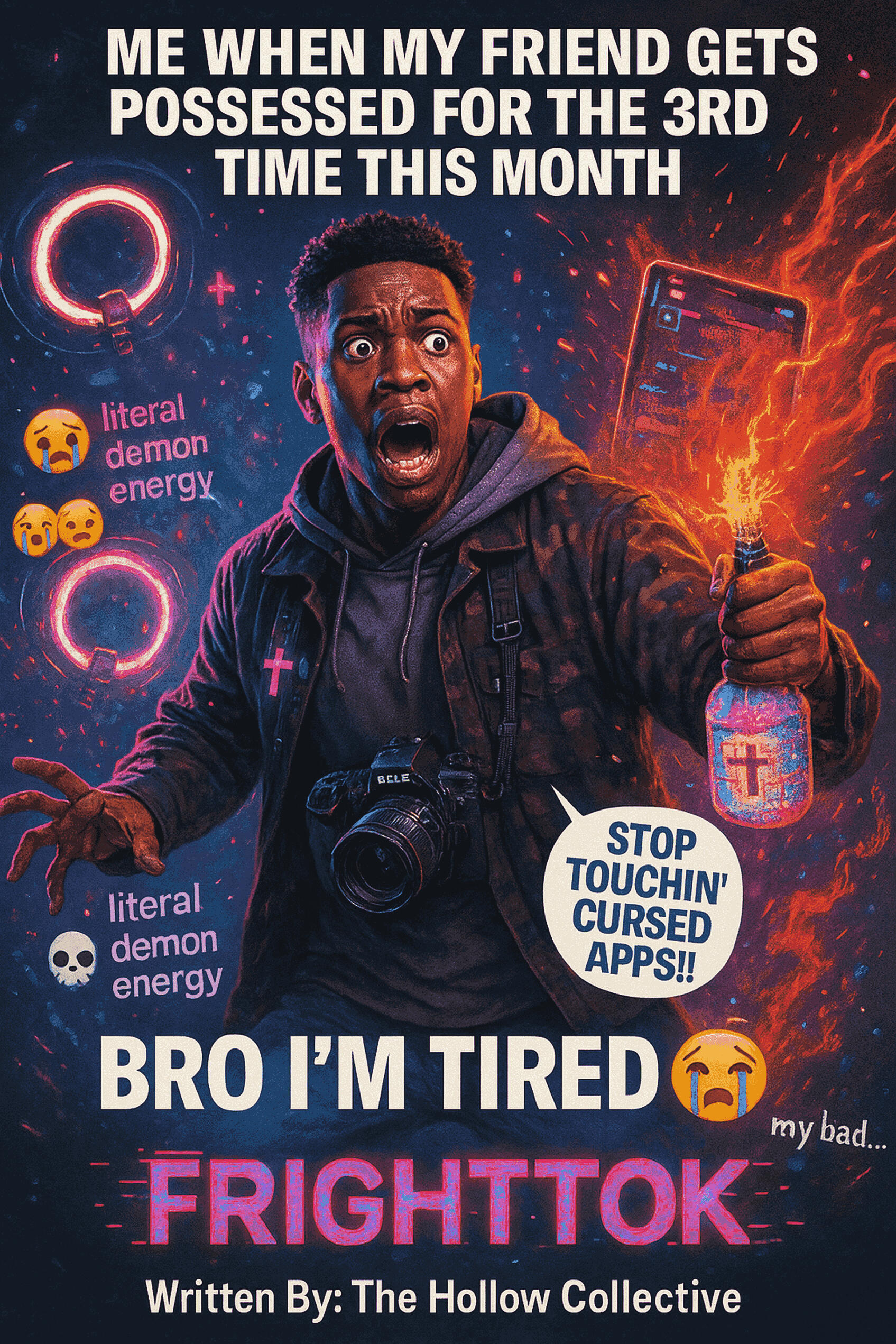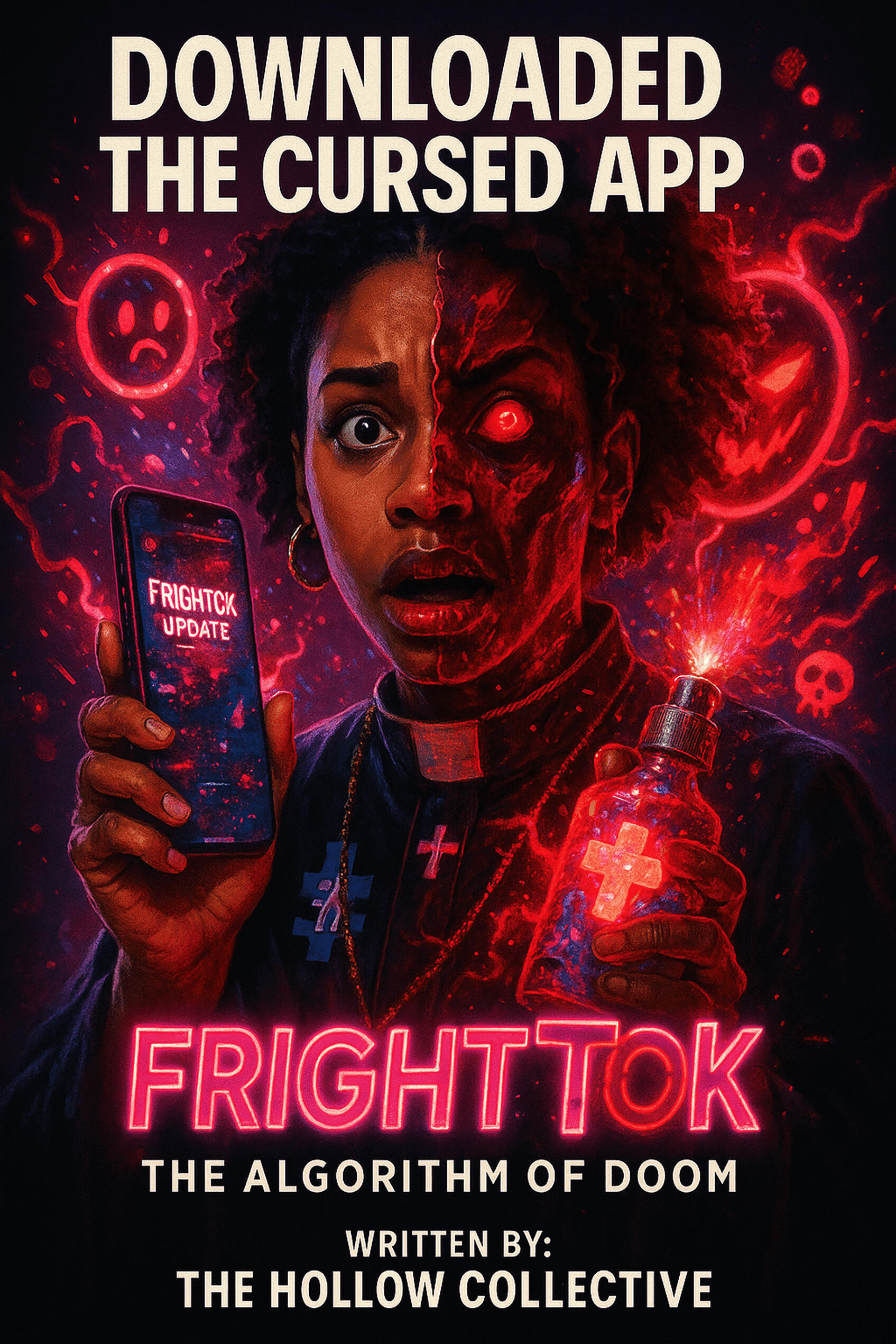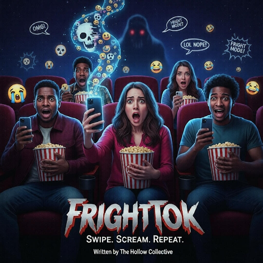 When a cursed social-media app turns viral horror challenges into real-world possessions, a burned-out influencer crew and a livestreaming exorcist must out-meme, out-pray, and out-panic a sentient algorithm in a savage parody of modern horror, clout culture, and the internet’s addiction to fear—before their screams become content forever in FrightTok: The Algorithm of Doom.